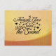 La postal inspiradora representa un fondo sencillo con tonos marrones y dorados. Presenta el querido himno cristiano, "gracia asombrosa cuán dulce es el sonido", rodeado de notas musicales y corazones.