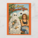 This charmingly awkward greeting card features a classic sheet-ghost offering a bouquet of flowers to a visibly unimpressed woman seated beside him on a park bench. With retro-inspired illustration, warm nostalgic tones, and bold lettering that reads “I’m Sorry I Ghosted You,” this design humorously captures the all-too-relatable dating phenomenon of disappearing without explanation.