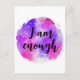 Otra postal espiritual de JessicaAmber - pregunta sobre las órdenes de los personalizados! Esta afirmación es para ti si quieres sentir más aceptación sobre tu situación actual, para calmar la resistencia y permitir que el bienestar que merecidamente es el tuyo fluya fácilmente hacia ti. Soy suficiente. Puede editar este texto (las frases cortas funcionan mejor). Este diseño fue creado en Procreate, utilizando pinceles de acuarela digital de 'PicByKate', en tonos rosa y morado. Incluye grabado de pincel de caligrafía negra. Un gran regalo para los amigos que están en nuevos conceptos de edad. Creado el 31 de julio de 2023. Para más arte de afirmación, visita mi tienda Zazzle.com/jessicaamberartist 💧 Para pedidos de personalizados, envíame un correo electrónico a jessicaamberartista+zazzle(at)gmail.com