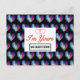 Esta divertida tarjeta postal es perfecta para El día de San Valentín, aniversarios o simplemente para que esa persona especial sepa que le importa. El diseño de fondo presenta un patrón de corazones teñidos de corbata azul y rosa. En el centro hay una caja blanca con obras de arte que dice: "¡Soy tuya, NO REEMBOLSAS!" En la parte posterior de la postal hay una versión más pequeña del corazón teñido de corbata al lado de la dirección de retorno. También hay líneas gobernadas en la parte posterior para una dirección. El color de fondo se puede personalizar.