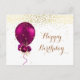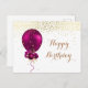 Postal con globo de cumpleaños feliz de Sparkle Gold y Fuchsia Floral.
