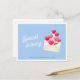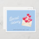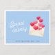 Valentine's day postcard with cute envelope and hearts illustration, and modern script lettering "Special delivery". Pastel blue, pink and red colors.