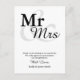Magnífica tipografía simple Negro y blanco "Mr&Mrs." boda gracias postal Haga clic en el botón personalizar para personalizar el diseño eligiendo el color de fondo que le guste e incluso agregue su propio texto.