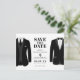 Que todos sepan que ustedes dos se han establecido en una fecha para su boda con este moderno salven la tarjeta de fecha con dos trajes negros. Personalice agregando sus nombres, fecha y ubicación del boda.