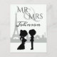 Este París, Francia, presenta diseños en tonos grises que forman una hermosa escena parisina con una hermosa pareja recién casada. El diseño incluye el texto "Mr & Mrs." y puede ser personalizado con el nombre de la pareja.
