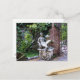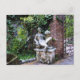 Hermosa estatua entre un jardín en la antigua San Agustín, Florida, presentada en una postal.