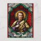 Retrato de vidrio manchado de San Judas con la leyenda "Patrono de Fundas desesperados y causas perdidas" si hay espacio disponible
