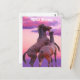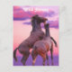 Fotografía de sementales silvestres jugando durante el amanecer, mostrada en una postal. — La foto está protegida por derechos de autor por la fotógrafa, Christina Spiegeland.