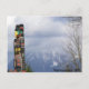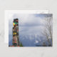 Polo de tótem y montañas en el parque Stanley, Vancouver BC