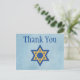 Con una hermosa estrella azul y dorada de David en exhibición, esta postal de agradecimiento presenta un precioso fondo azul con "Gracias" escrito en negrita con letras azules. ¡Compra hoy tus tarjetas de agradecimiento! Fondo azul: Michel Müller Star of David: Sonya DeHart Design http://www.sonyadehartdesign.com | http://www.sonyadehartdesign.etsy.com