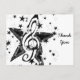 Nota de color negro rodeada de estrellas negras y blancas.