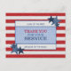 El diseño audaz y patriótico de la parte delantera de esta postal rústica, de estilo rústico, cuenta con estrellas de tela de algodón con un aspecto de denim en diferentes tonos azules en patrones contrastantes contra un fondo denim de rayas rojas sobre blanco, en los colores de la bandera estadounidense. En el área blanca central con un borde que se asemeja a la punción azul, en un fondo azul claro, están las palabras "Gracias por tu servicio" en la tipografía popular en tres colores diferentes. Encima y debajo de estas palabras están las palabras "Tierra de los libres por los valientes". La parte posterior de la tarjeta postal contiene una dirección y un mensaje de retorno de personalizable. Puede personalizar este elemento cambiando el texto de la plantilla de producto. Esta tarjeta es una excelente manera de expresar su agradecimiento a los veteranos en el Día de los Veteranos o en cualquier momento.