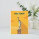 Stylized graphic illustration of the Statue of Liberty (EST 1886) set against a bright, warm yellow background with clouds. Vintage travel poster aesthetic.