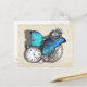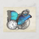 Un gran diseño de estilo punk de vapor con una mariposa azul verde azulada, reloj de bolsillo de plata, cadenas y alfombras. Se ve fabuloso en estas postales.