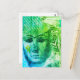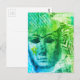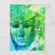 Postal Stone face Abstract Mix Media Collage Blue Green