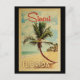 Un diseño de arte Stuart Florida, de estilo poster de viajes vintage, único y retro de mediados de siglo. Cuenta con una palmera curvada en una playa de arena con el océano bajo un cielo azul turbio.