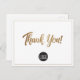 Personalice esta plantilla de postal sencilla y fácil de usar con el logotipo, el mensaje, el nombre y la dirección de retorno de su empresa. Hágale saber a sus clientes, clientes, clientes que están agradecidos por su apoyo durante estos tiempos inciertos. Presentando un guión impreso de oro falso "gracias" en un estilo moderno.