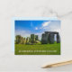 Traslade a Stonehenge con esta postal totalmente personalizable. Esta tarjeta presenta el misterioso monumento del círculo de piedra en un día soleado y luminoso, con césped verde y vibrante. El impresionante monumento prehistórico se encuentra en Amesbury, Wiltshire, Inglaterra. El sitio arqueológico sigue siendo un popular destino de viaje para los aficionados a los sitios del patrimonio mundial, ruinas antiguas y cementerios, e historia inglesa. El lado inverso de la tarjeta es azul claro predeterminado con una minúscula imagen de acento Stonehenge en el centro inferior. Hay un lugar para personalizar la tarjeta con tu propio texto, el texto predeterminado es Stonehenge, Wiltshire England en blanco impreso. Simplemente pulse el botón Personalizar para editar o eliminar texto, o pulse el botón Editar para cambiar el tipo de letra, el color del tipo de letra o el color del lado inverso. Ideal para viajeros, amantes de Inglaterra, Europa, monumentos antiguos, scrapbooking, recuerdos, y soñadores aficionados a las postales de viaje.