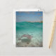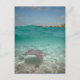 Postal con una imagen sobre el agua de una grava en la clara laguna azul de la isla tropical del pacífico Bora, cerca de Tahití, en la Polinesia Francesa.