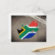 Postkarte mit einem Umriss von Südafrika, gefärbt en den Farben der Nationalflagge. Auf der "Best in Travel 2018"-Liste von Lonely Planet liegt Südafrika auf Platz 10.