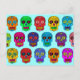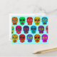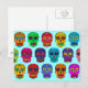Postal de hombre y mujer con calaveras de azúcar. El color de fondo se puede personalizar.