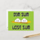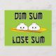 Una imagen personalizado de dos maniquíes de Dim Sum, uno feliz, uno triste, sobre un plato con palillos y la frase "Suma de atenuación, Suma de pérdida" El color de fondo puede ser cambiado, haga clic en "Personalizar" y luego haga clic en "Editar" y luego en "Fondo" y elija color.