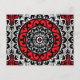 Postales de diseño textil inspirado en el suroeste / azteca de batik inspirada en el diseño de un dial solar / mandala - rico tomate rojo, negro y blanco, acentuado con gris plateado / gris