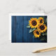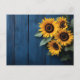 Una audaz vida quieta con brillantes girasoles amarillos que descansan sobre un fondo de madera azul marino. Esta composición aporta calidez y encanto, ideal para las cocinas de granja, la decoración de verano o para los amantes del arte floral.