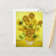 Sunflowers Vincent van Gogh. Todavía la vida en un fondo amarillo. Un ramo luminoso de flores de girasol se levanta en un jarrón. Reproducción de obras famosas de imágenes artísticas de dominio público.