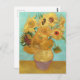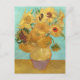Sunflowers (1889) Vincent van Gogh. Todavía la vida en un fondo azul. Un ramo luminoso de flores de girasol se levanta en un jarrón. Reproducción de obras famosas de imágenes artísticas de dominio público.