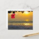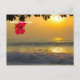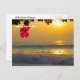 Poner el sol en Hawaii se refleja a través del océano. Envía una postal hawaiana para decirle aloha a tu familia y amigos, mostrándoles el brillante sol dorado de las puestas de sol de las islas tropicales.