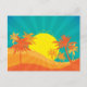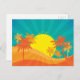 Con el diseño de una playa tropical retro al atardecer con palmeras. Este surf de diseño está decorado en tonos rojos, naranjas y amarillos y recuerda a un balneario tropical en verano. Para los amantes del sol, el surf, la arena y las puestas de sol tropicales.