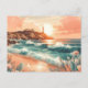 Postal Sunset Lighthouse Ocean Beach Boho Floral