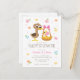 ¡Bienvenidos a la próxima llegada de tu niñita con esta adorable invitación Baby Shower de la Chica Super Simple Canciones "5 Patos Pequeños"! Con los queridos cinco patos de canciones Super Simple, esta invitación trae el encanto de la rima infantil clásica a su celebración. Diseñado con colores suaves y juguetones, perfecto para una niña, es una opción encantadora para los padres que adoran temas musicales divertidos. ¡personalizar con los detalles de tu evento para una ducha que seguro traerá sonrisas, risas y dulces cantos!