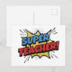 A vibrant, superhero-inspired vector design featuring a teacher in a heroic pose, complete with a cape and mask, accompanied by bold, "Super Teacher" typography in an action-packed comic book style.