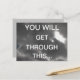 Esta es una postal para enviar a alguien que está pasando por una fase muy difícil o una pérdida... dice SUPERARÁS ESTO... en letras blancas grandes sobre un fondo oscuro y tormentoso.