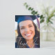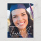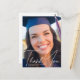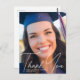 Esta tarjeta postal de agradecimiento de graduación de moda presenta un elegante guión blanco manuscrito sobre una foto completa y chic de su graduado. Tarjetas postales de superposición de tipografía moderna.