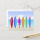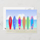 Cuenta con un fondo de playa con arena, océano y cielo, 6 tablas de surf con una decoración colorida.