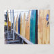 Surfboards de época en la playa de Montauk rediseñadas para formar una valla artística. tablas de madera en una variedad de colores que van desde miel verde azulada, amarilla, ámbar y trigo. El paraíso de los surfistas en Montauk, Nueva York. Fleetto