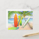 En la orilla y entre las palmeras, hay una colorida tabla de surf que espera pacientemente sus "grandes Kahunas". :: Acuarela original de Barbara Bayer