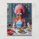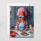 Un pulpo para los ojos con gorro de ducha rosa mujer cenando con su gato mascota arte surrealista
