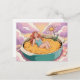 Postal Surreal sentada en traje de baño en un plato cursi