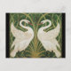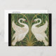 Una postal con el diseño de papel pintado por Walter Crane (1845-1915), Swans, Rush & Iris (1875). Artista inglés del movimiento Artes y Oficios. Él produjo muchos cuadros decorativos, además de ilustraciones para libros infantiles. Una hermosa representación de dos cisnes blancos sobre un fondo verde.