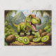 Esta es una imagen generada por IA. Me gustaría que la cara de T-Rex estuviera más cerca de la fruta, pero me gustó la montaña de fondo así que elegí esta imagen para ponerla en una postal.
