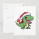 Postal T-Rex Dinosaur Kawaii en Sombrero de Navidad