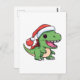 Postal T-Rex Dinosaurio Kawaii en Sombrero de Navidad