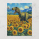 Postal T-Rex en un campo de girasol