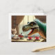 Postal T-rex, gatito, fiesta de té