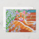 Postal Tabby Cat en el camino del jardín