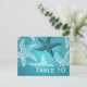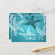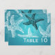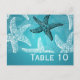 Diseño de "Número de Mesa" de Boda de Playa con diseño romántico de Starfish Azul y personalizado número de tabla texto. Impresione a su familia y amigos con este diseño elegante y moderno. ¡personalizable total! Fácil de usar y fácil de personalizar. ¡No te quedes sin el tuyo!